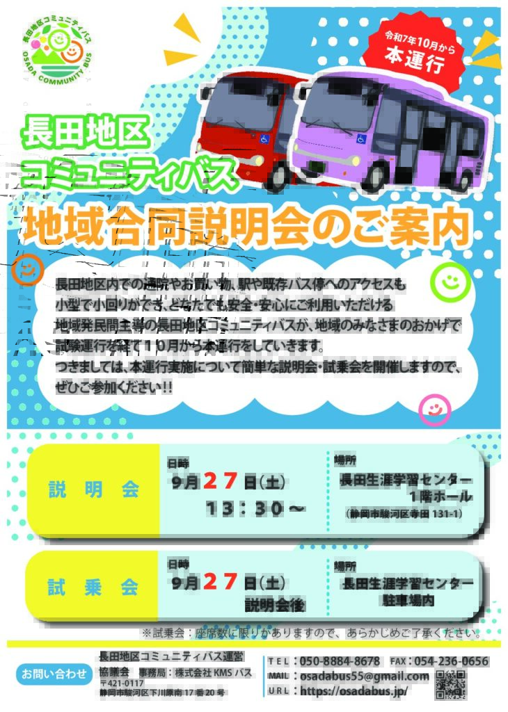 日時:2025年9月27日 時間:13:30~長田地区 コミュニティバス 地域合同説明会 -