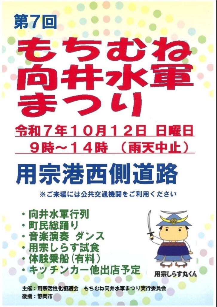 日時:2025年10月12日 時間:09:00~14:00もちむね向井水軍まつり -