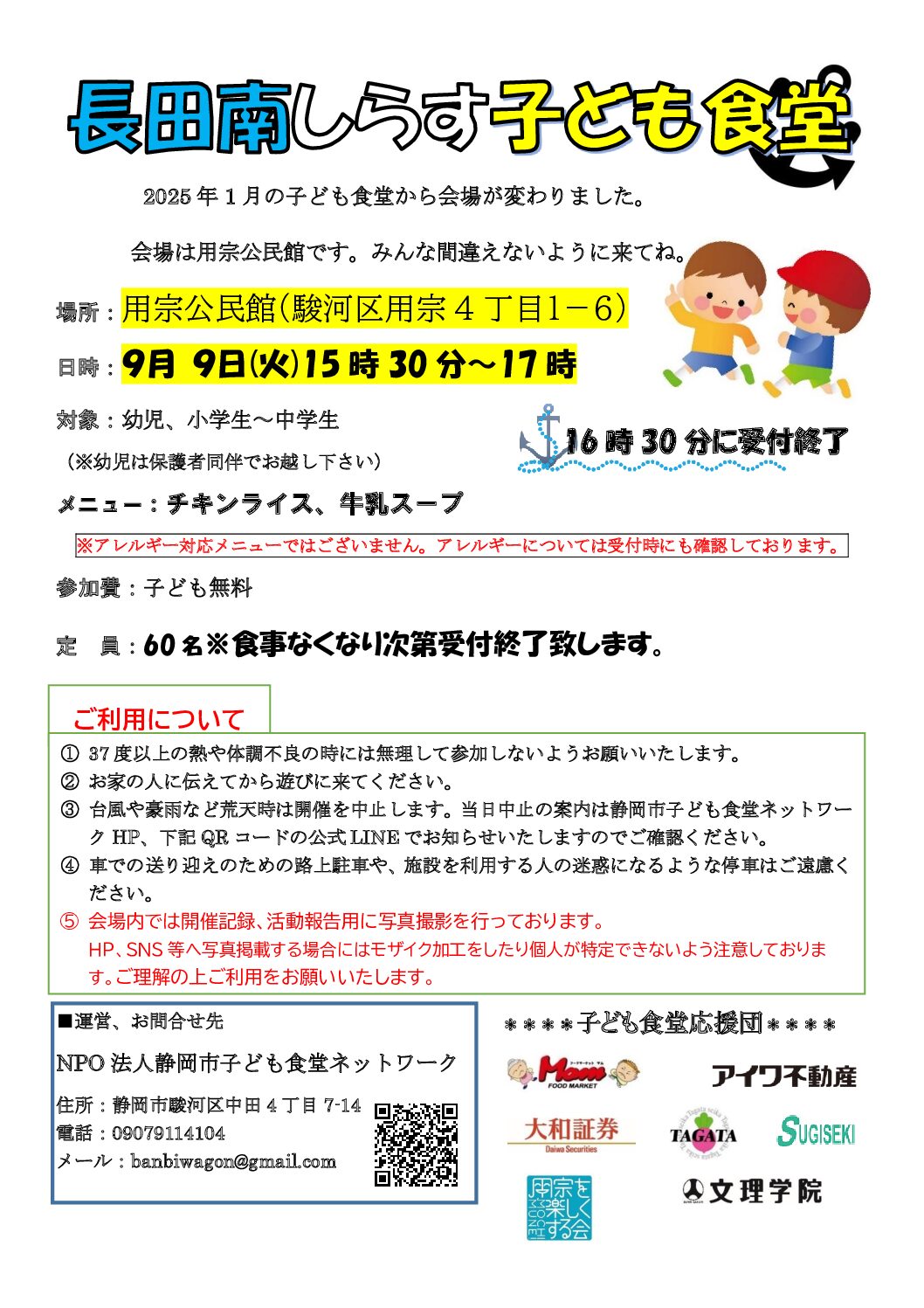 今月の子ども食堂は9/9(火)15:30〜17:00
